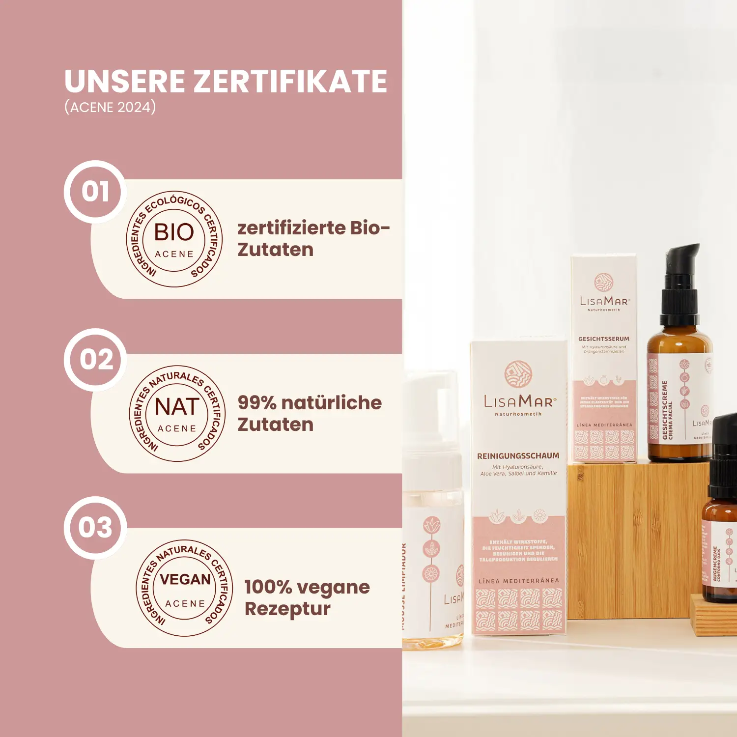 | Nachhaltigkeitsmerkmale | Zertifizierung von ACENE: Bio, Vegan und Natürlich |