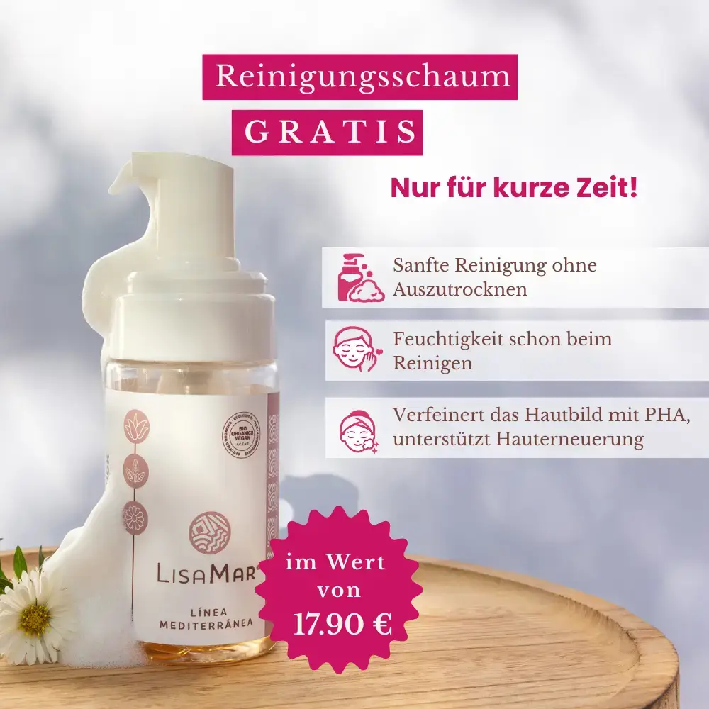 Früher hatte ich oft trockene Stellen nach dem Waschen. Mit dem LisaMar Reinigungsschaum ist das vorbei. Danach das Serum und die Creme, meine Haut fühlt sich viel besser an.