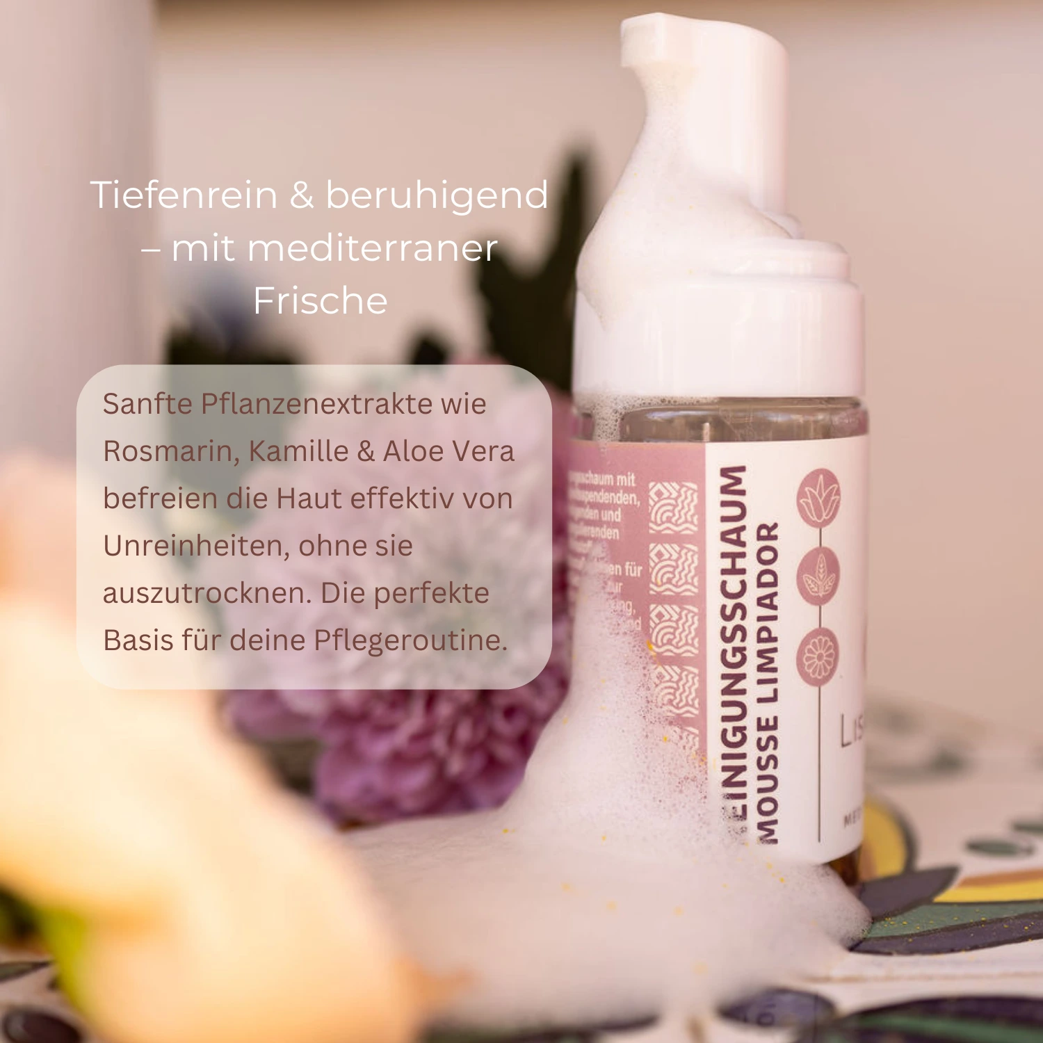 Erlebe mit dem LisaMar® Reinigungsschaum ein neues Level an sanfter und effektiver Gesichtsreinigung. Die Textur verwandelt sich in einen zarten Reinigungsschaum, der dein Gesicht gründlich von Make-up, Talg und Schmutz befreit – ganz ohne deine Haut auszutrocknen. Ideal als täglicher Gesichtsreiniger für sensible Haut, trockene Haut und Mischhaut.